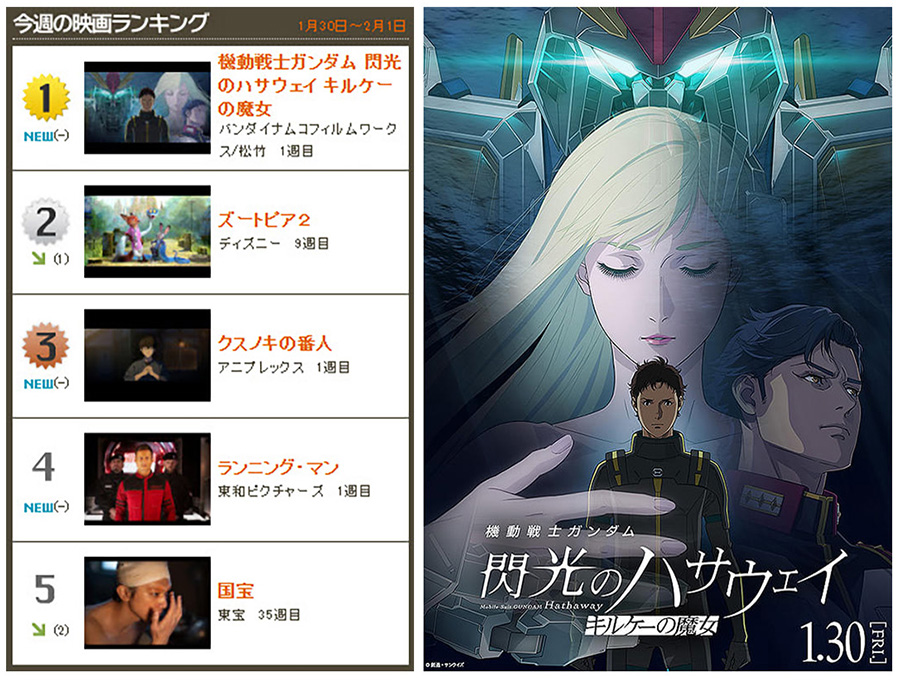 "Mobile Suit Gundam Hathaway 2" เปิดตัวอันดับ 1 Japan Box Office ล้มแชมป์แปดสัปดาห์ "Zootopia 2"
