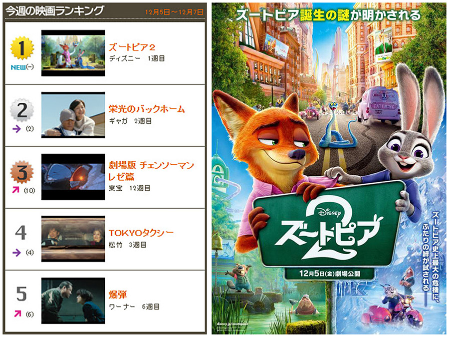 และ Jason Bateman กลับมาพากย์เป็น Nick Wilde เปิดตัวในอันดับที่ 1 Japan Box Office ทำเงินจากการเข้าฉายในโรงภาพยนตร์