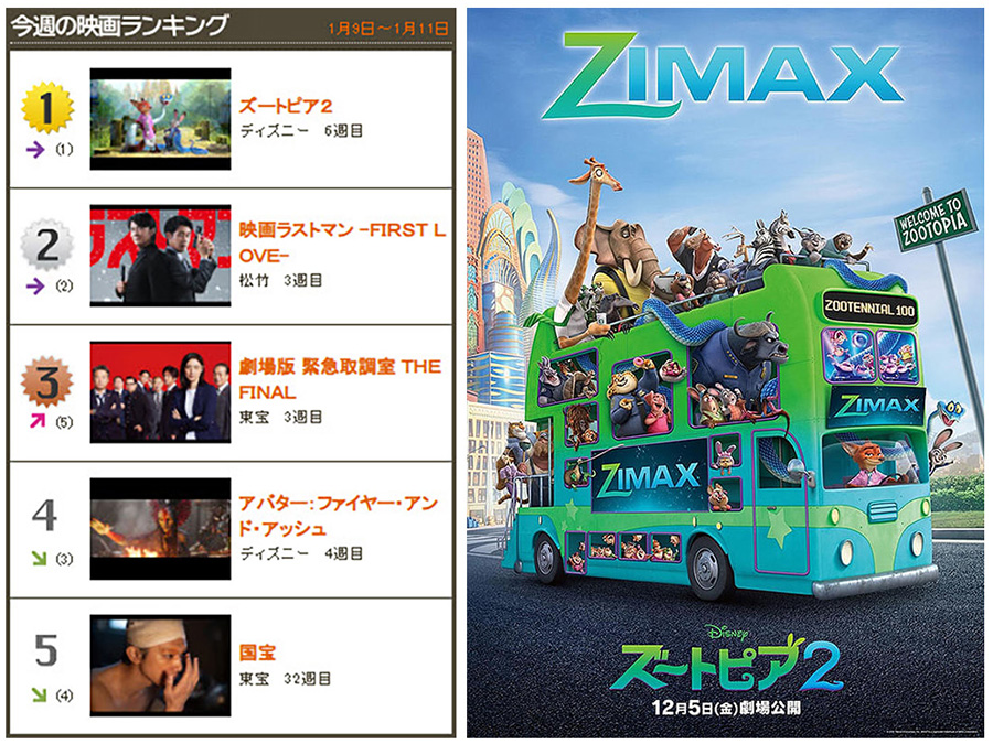 Zootopia นครสัตว์มหาสนุก 2 สัปดาห์ที่ 6 ยังคงที่ในอันดับที่ 1 Japan Box Office ทำเงินจากการเข้าฉายในโรงภาพยนตร์ที่ญี่ปุ่นใน