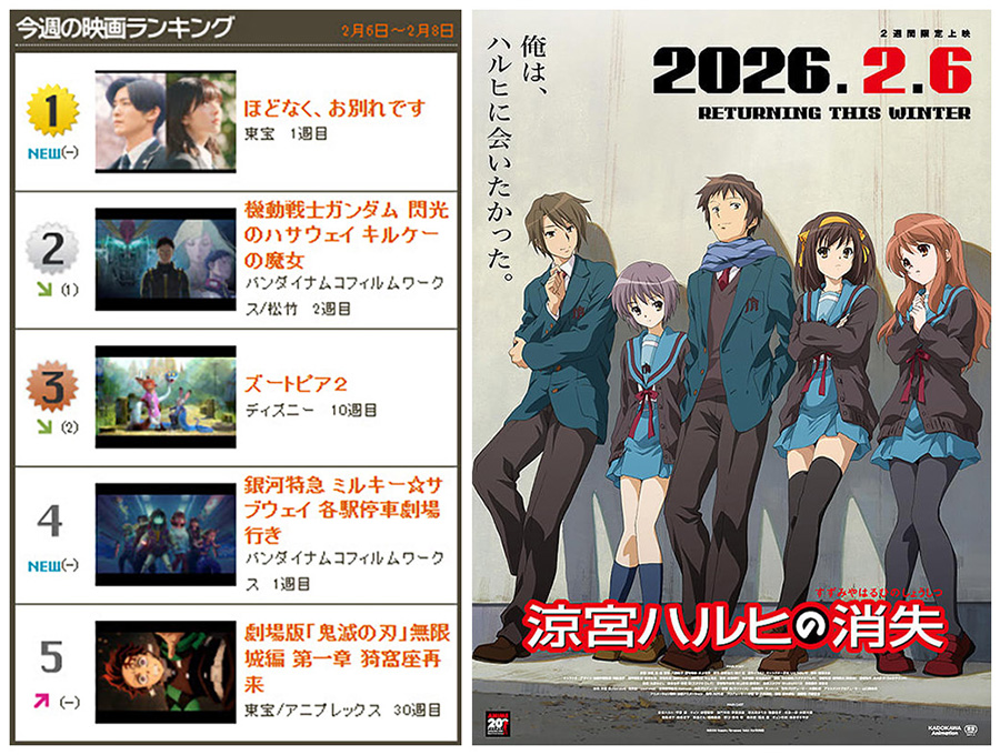 "การหายตัวไปของสึซึมิยะ ฮารุฮิ" กลับมาเข้าฉายในญี่ปุ่นอีกครั้ง เปิดตัวอันดับ 10 Japan Box Office